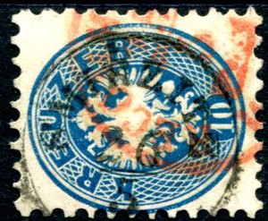 Austria 1864 10k Arms perf 10 with SMIRZITZ cds (Bohemia) also a red cds