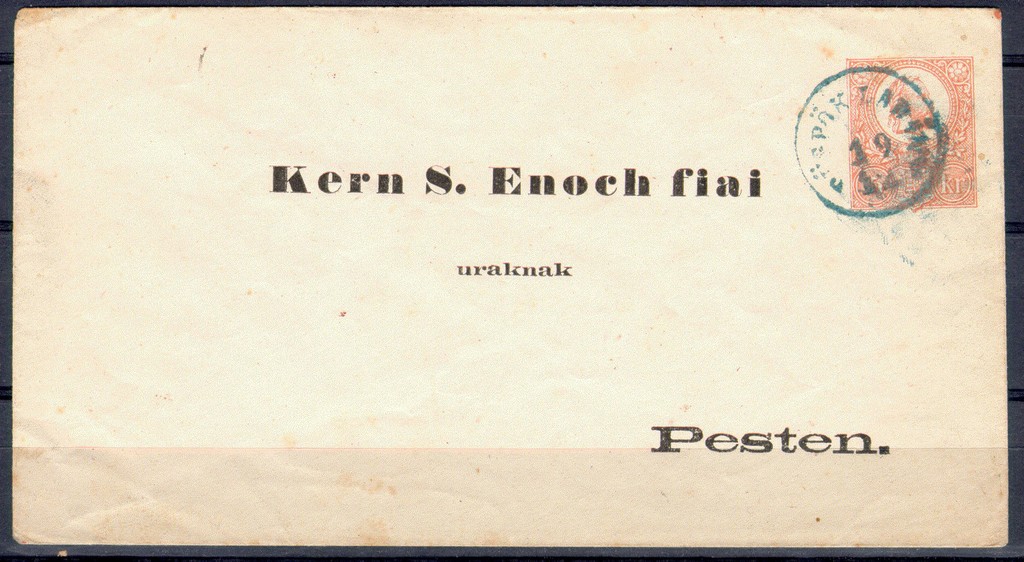 5k postal stationery envelope with blue PUSPOKLADANY cds, to BUDAPEST cds, 1873